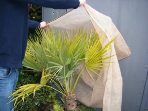 Pflanzen wie Kirschlorbeer können den Winter auch draußen verbringen, müssen aber dementsprechend präpariert werden: Der Pflanzkübel sollte zum Schutz vor der Kälte aus dem Boden auf einer Styroporplatte stehen, und die Pflanzen selbst können mit Vlies oder Jute umwickelt werden, damit auch extreme Kälte keine negativen Auswirkungen hat.